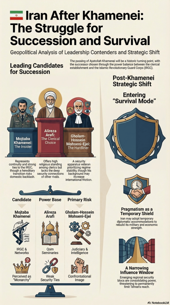 The next Supreme Leader may therefore feel pressure to act quickly to preserve what remains of Iran’s strategic position before the regional balance of power shifts even further.